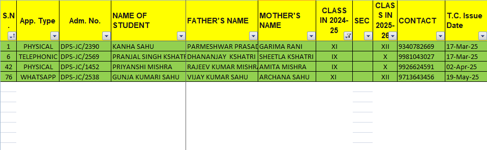 TC LIST OF STUDENTS
